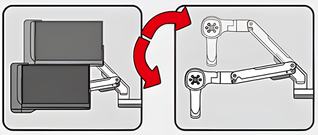 This feature helps doctors position the camera or display without obstructing the view and working space of the surgeon during examinations.